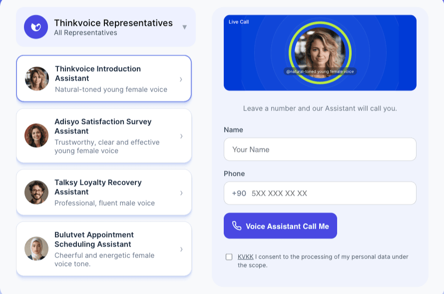 ThinkVoice Artificial Intelligence Call Analytics analyzes each call to summarize the conversation. It reveals the emotional state and satisfaction level of the other party. It differentiates slang or risky expressions, presents performance indicators regarding the representative's communication quality, and transforms all this data into meaningful insights.